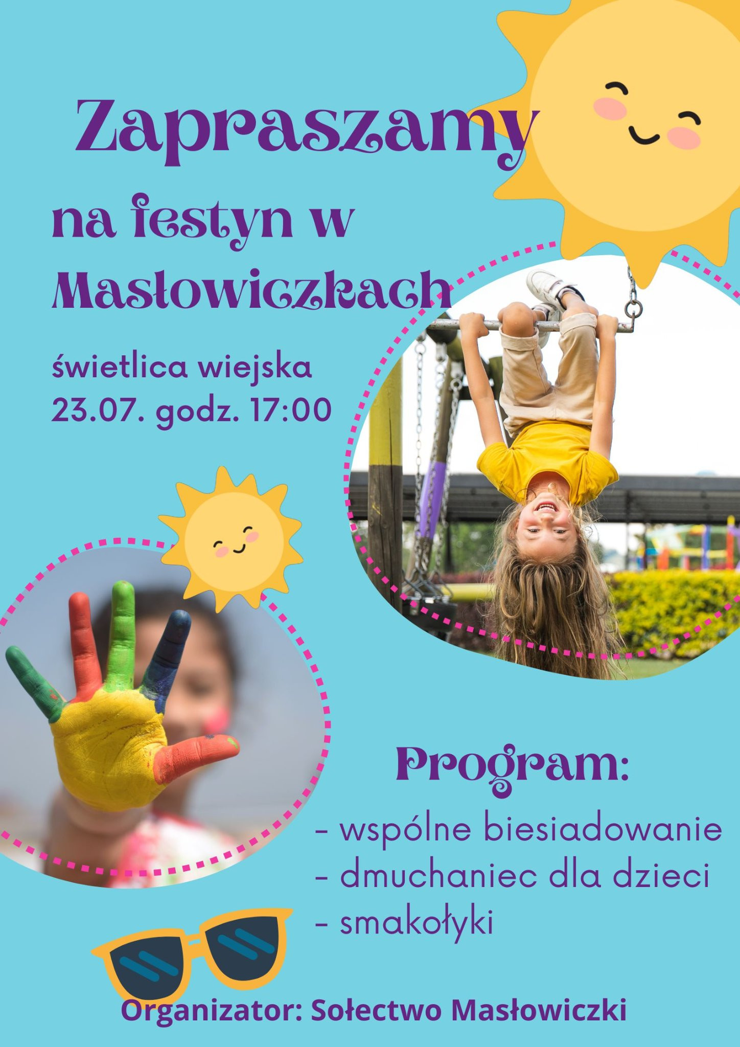 W sobotę 23.07.2022 o godz. 17:00 odbędzie się festyn w Masłowiczkach, który będzie miał miejsce przy świetlicy wiejskiej.
